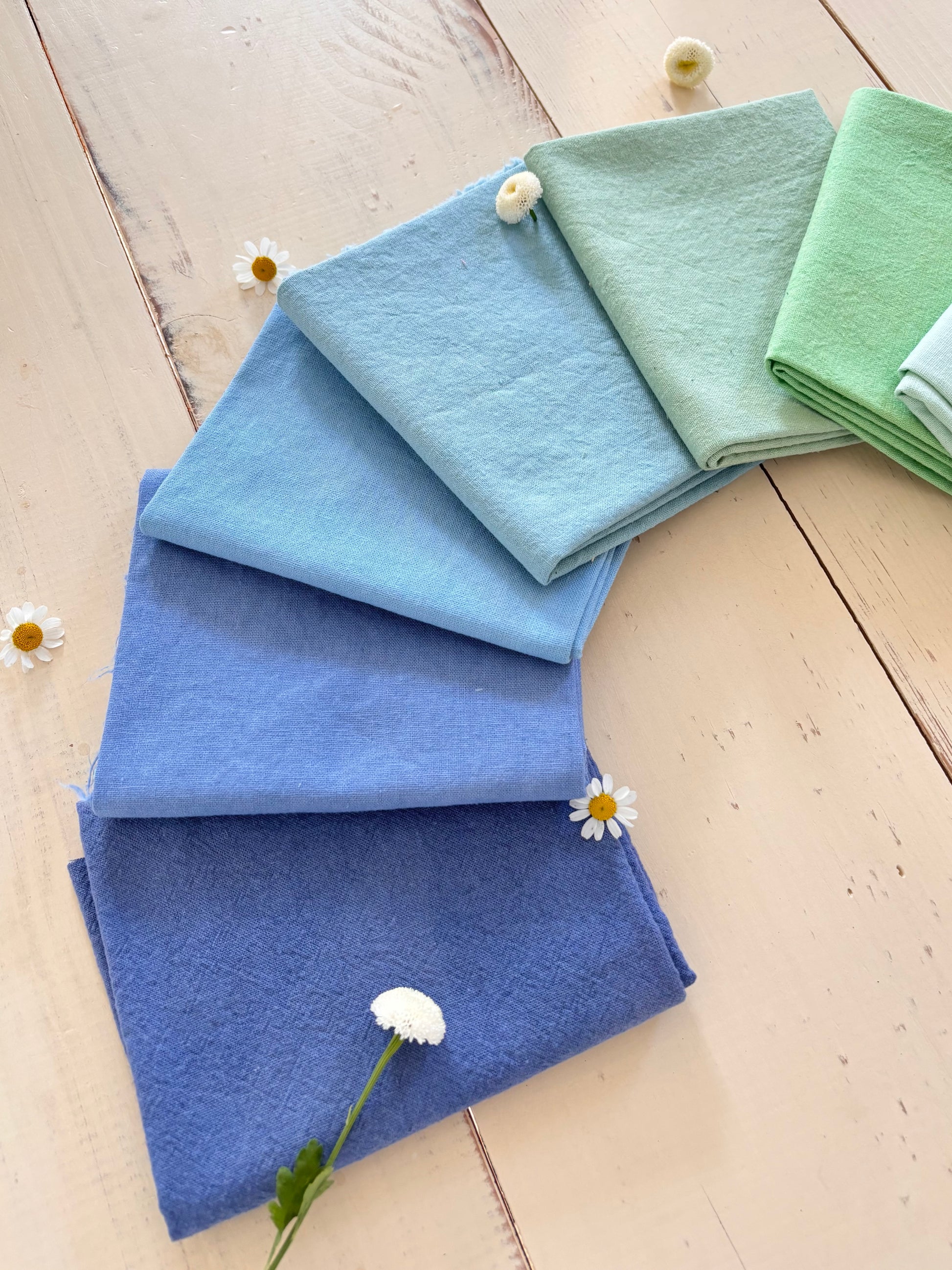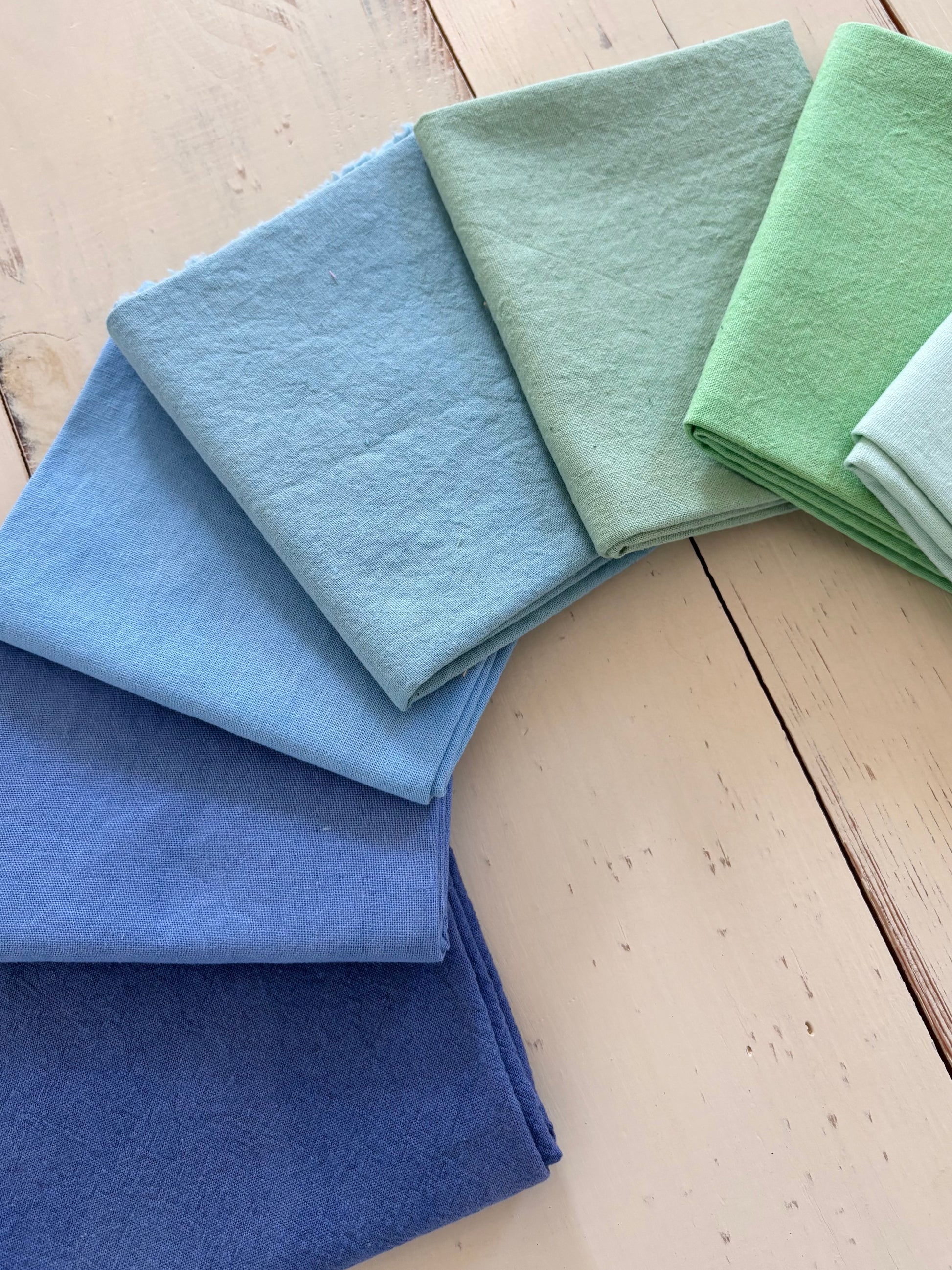 Eight specially picked hand dyed fat quarters! Each piece is approximately 18" x 22"