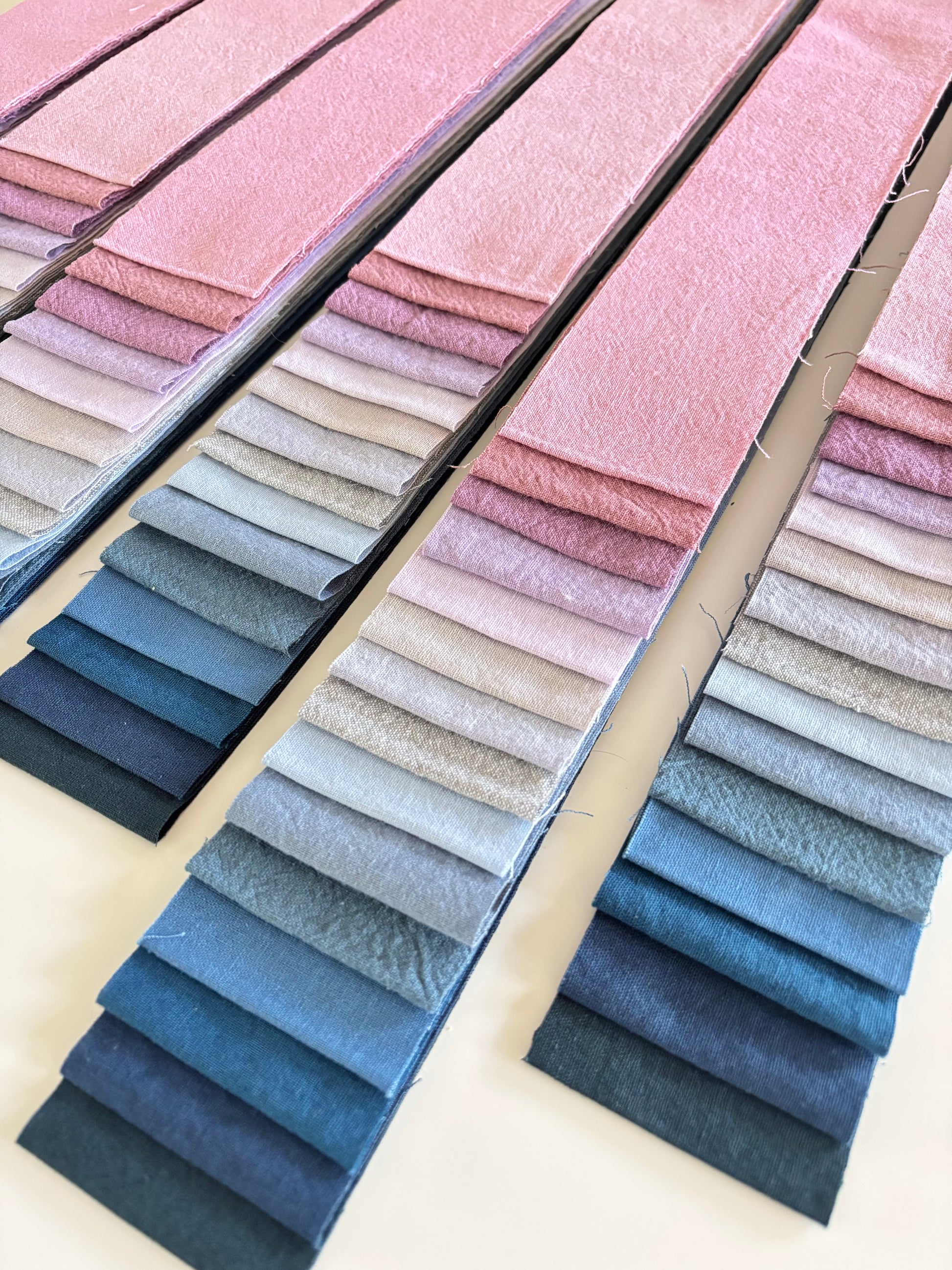 15 specially picked hand dyed strips! Each strip is 2.5” wide and cut selvage to selvage.