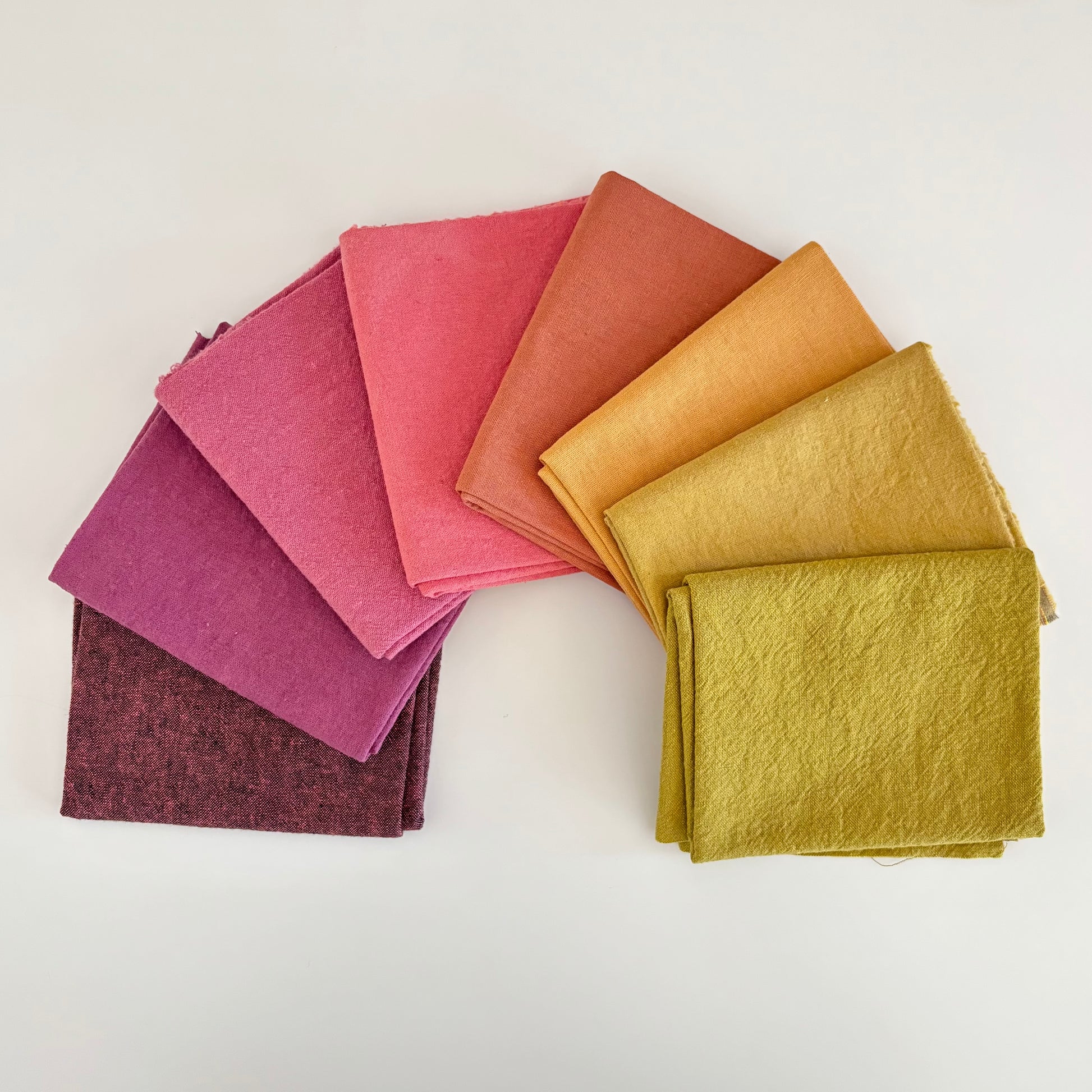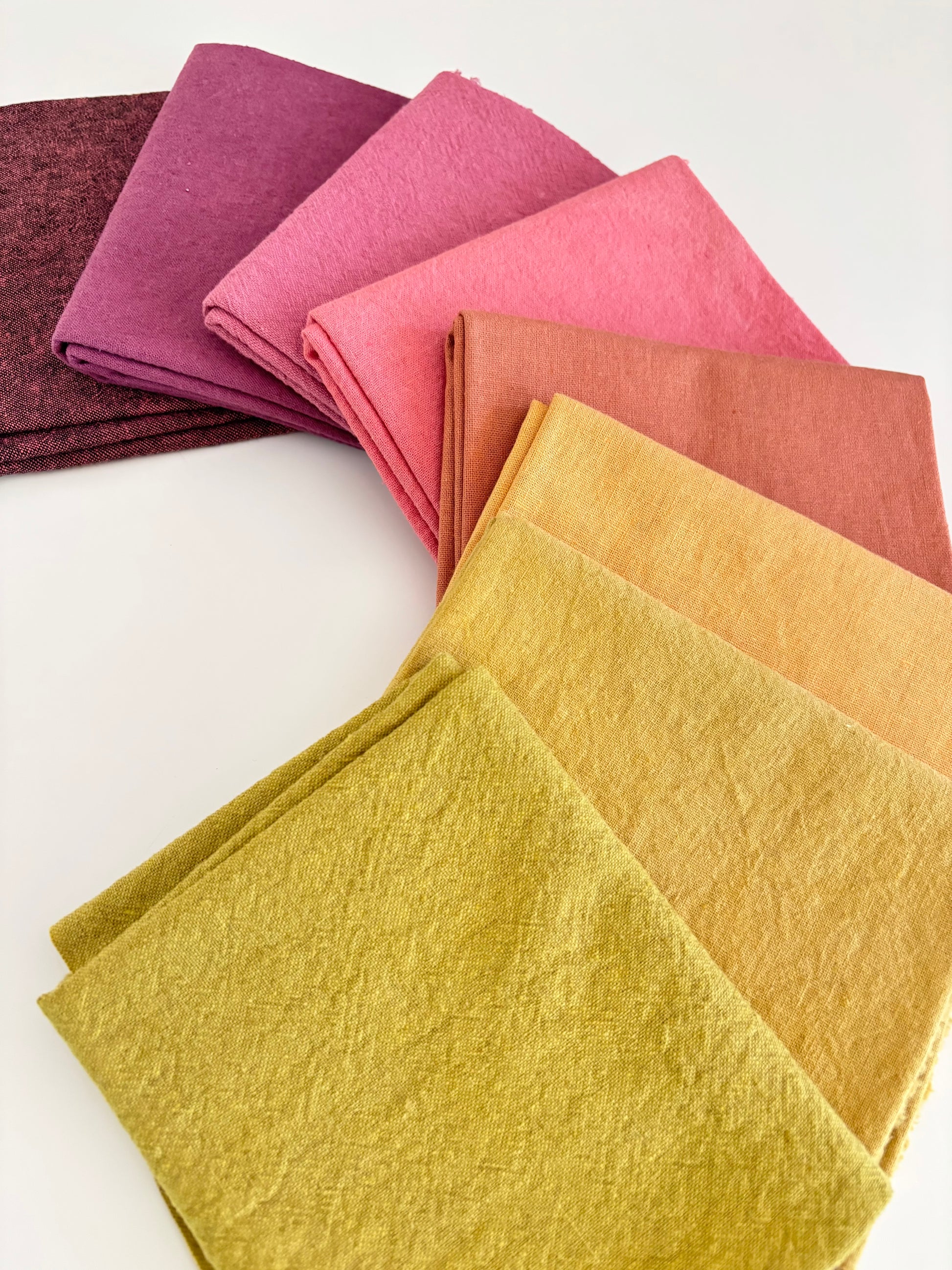 Eight specially picked hand dyed fat quarters! Each piece is approximately 18" x 22"